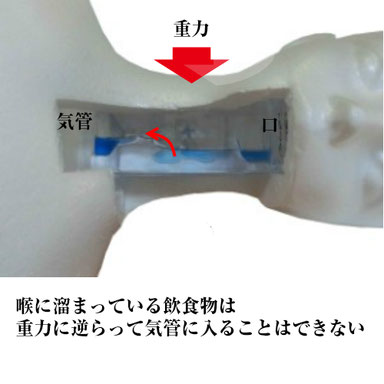 溜まった飲食物は、重力に逆らって気管に入れない。